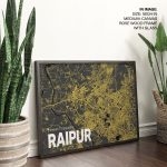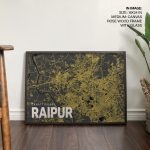 Wall Decor | Yellow poster map of raipur | Custom Size & Frame • Ready to Hang • Made in India • Eco-Friendly