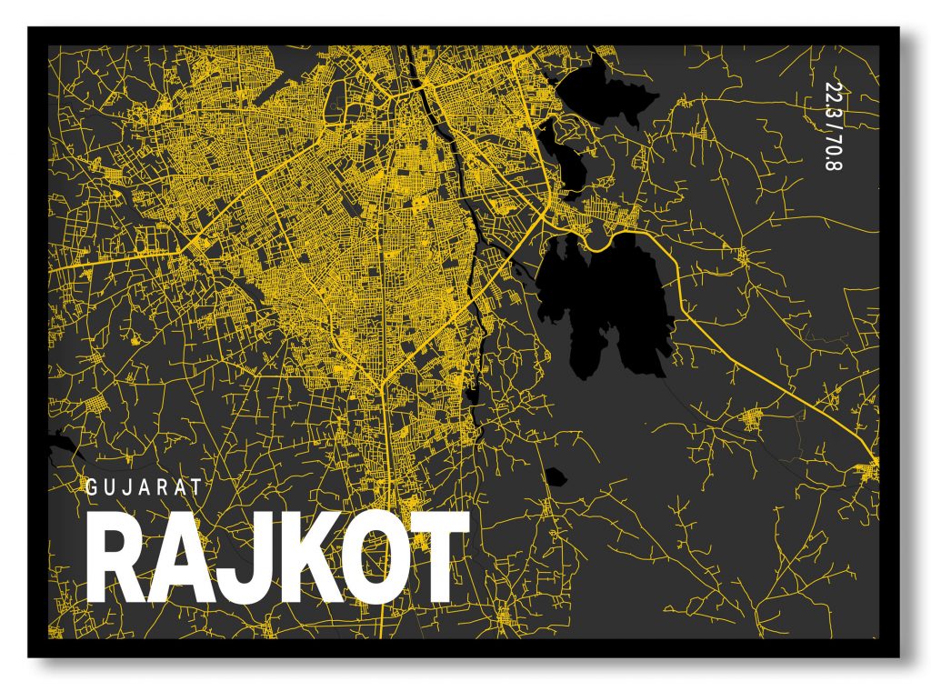 Wall Art | Yellow poster map of rajkot | Small to XXXL Sizes • 50+ Framing Styles • Non Toxic