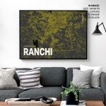 Wall Decor | Yellow poster map of ranchi | Custom Size & Frame • Ready to Hang • Made in India • Eco-Friendly
