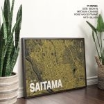 Wall Art | Yellow poster map of saitama | Small to XXXL Sizes • 50+ Framing Styles • Non Toxic