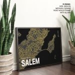 Wall Art | Yellow poster map of salem | Small to XXXL Sizes • 50+ Framing Styles • Non Toxic