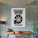 You can't drink all day - Funny - Bar Poster, Cocktails, Framed Wall Art - Choose Size & Frame Color